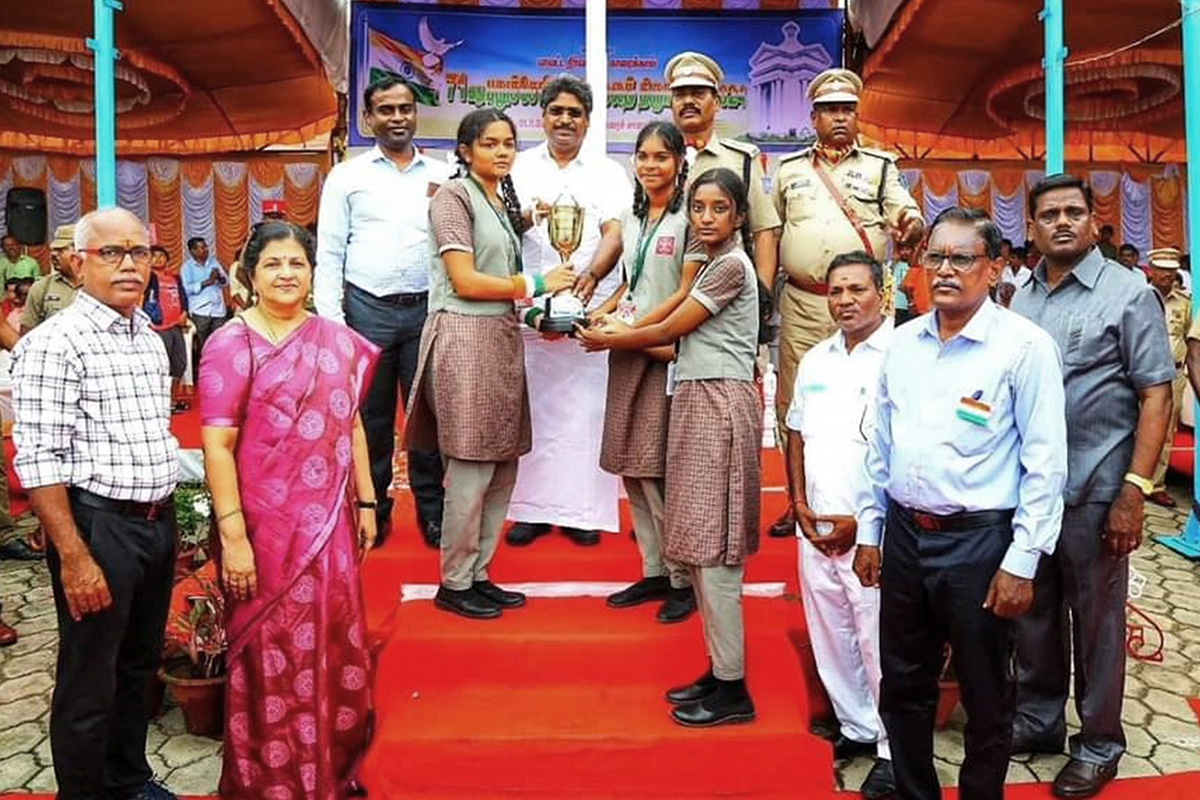 A symbol of Sacrifice ,the school aims to create in the minds of students ,the right attitude of Selfless Service to people around them with the hope that it would in turn lead to service to the nation.